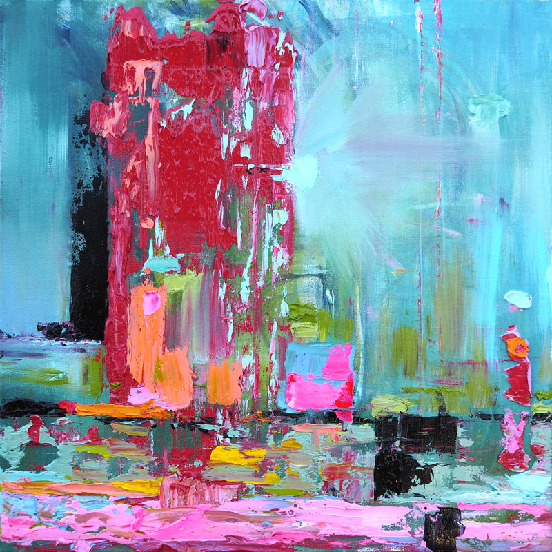 Painted in oil on top of acrylic. Brush and palette knife.